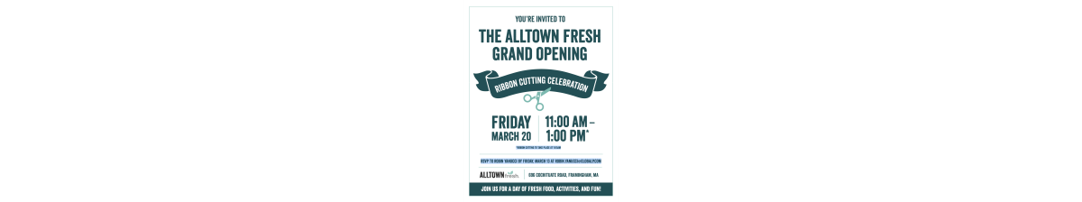 Join us in celebrating the Grand Opening of AllTown Fresh Framingham with us! We are so excited to be part of their new chapter as a business!